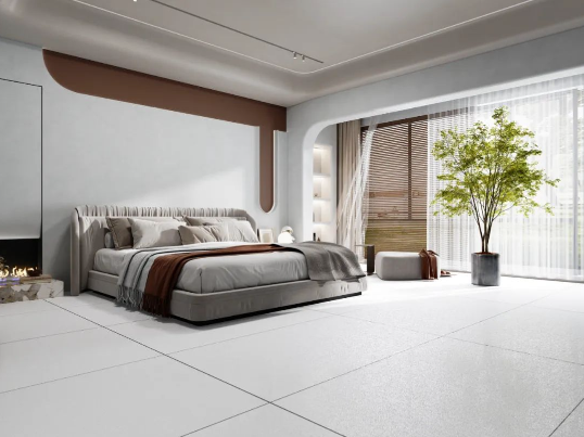 陽(yáng)光透入,地面采用750x1500mm沁園春通鋪,啞、柔、亮的三維浮雕質(zhì)感效果,10°微光配合大面積木質(zhì)元素的運(yùn)用,讓家居的自然氣息悄然流露,營(yíng)造出舒適、溫馨的睡眠環(huán)境。